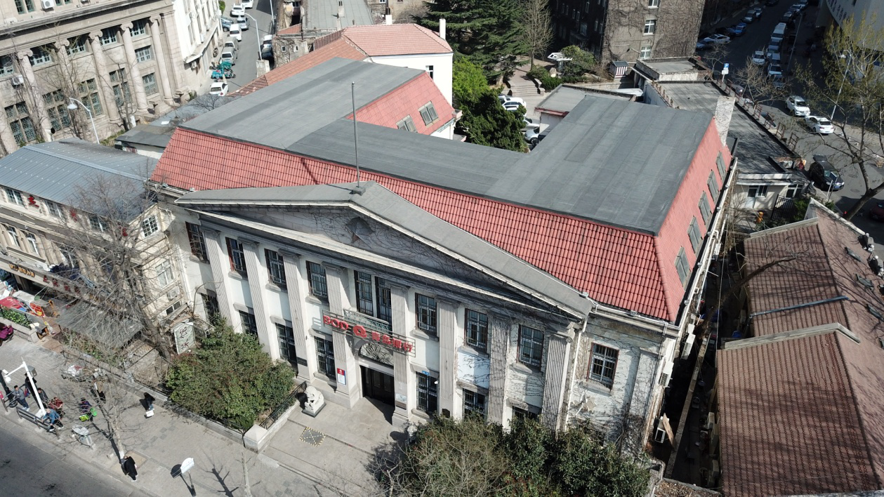 橫濱正金銀行青島支店舊址,位于市北區(qū)館陶路1號,仿歐式公共建筑風(fēng)格。占地7.17畝,基地面積4780平方米,建筑面積1787平方米,磚石木結(jié)構(gòu),地上二層,地下一層,有閣樓?;◢徥龌⒒覊γ婕t瓦折坡屋面,上有氣窗。正門西向,主立面有8根貼面石柱直達(dá)二層窗頂部,中央大三角山墻突出層線飾條,門上層有鐵花柵欄露天涼臺。建筑上部大廳高5.5米,廳內(nèi)有方型藻井。二層的正金大樓整體呈長方形。