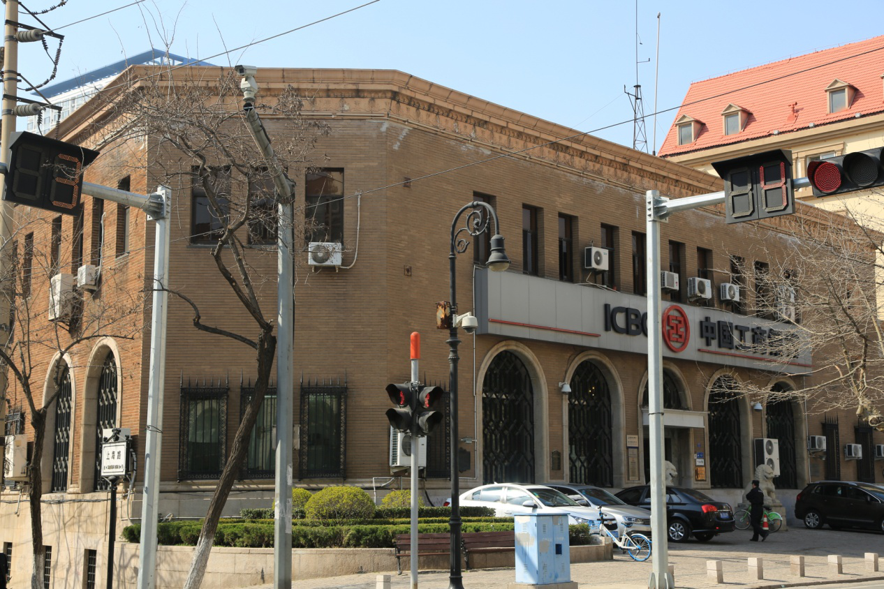 朝鮮銀行青島支行舊址,位于市北區(qū)館陶路12號(hào),由日本建筑師三井幸次郎設(shè)計(jì)。鋼筋混凝土結(jié)構(gòu),總建筑面積2000平方米,矩形平面,地上兩層,地下一層,東南兩面臨街,室內(nèi)大廳650余平方米,高約8米,天花板頂部均用圖案花飾,以側(cè)窗及頂部采光,寬敞明亮。外墻以大門(mén)為中心,依次向兩邊展開(kāi)。建筑一層開(kāi)有與大門(mén)同寬的窗洞,上圓下方,邊緣用花崗巖條石精致裝飾。二層則并排開(kāi)有小窗洞,無(wú)任何裝飾,與一層形成明顯對(duì)比。由大倉(cāng)土木施工的整棟朝鮮銀行建筑僅在頂部檐口有些瑣碎的條石雕花裝飾,大面積的立面外墻則被處理成細(xì)致的水平凹線。