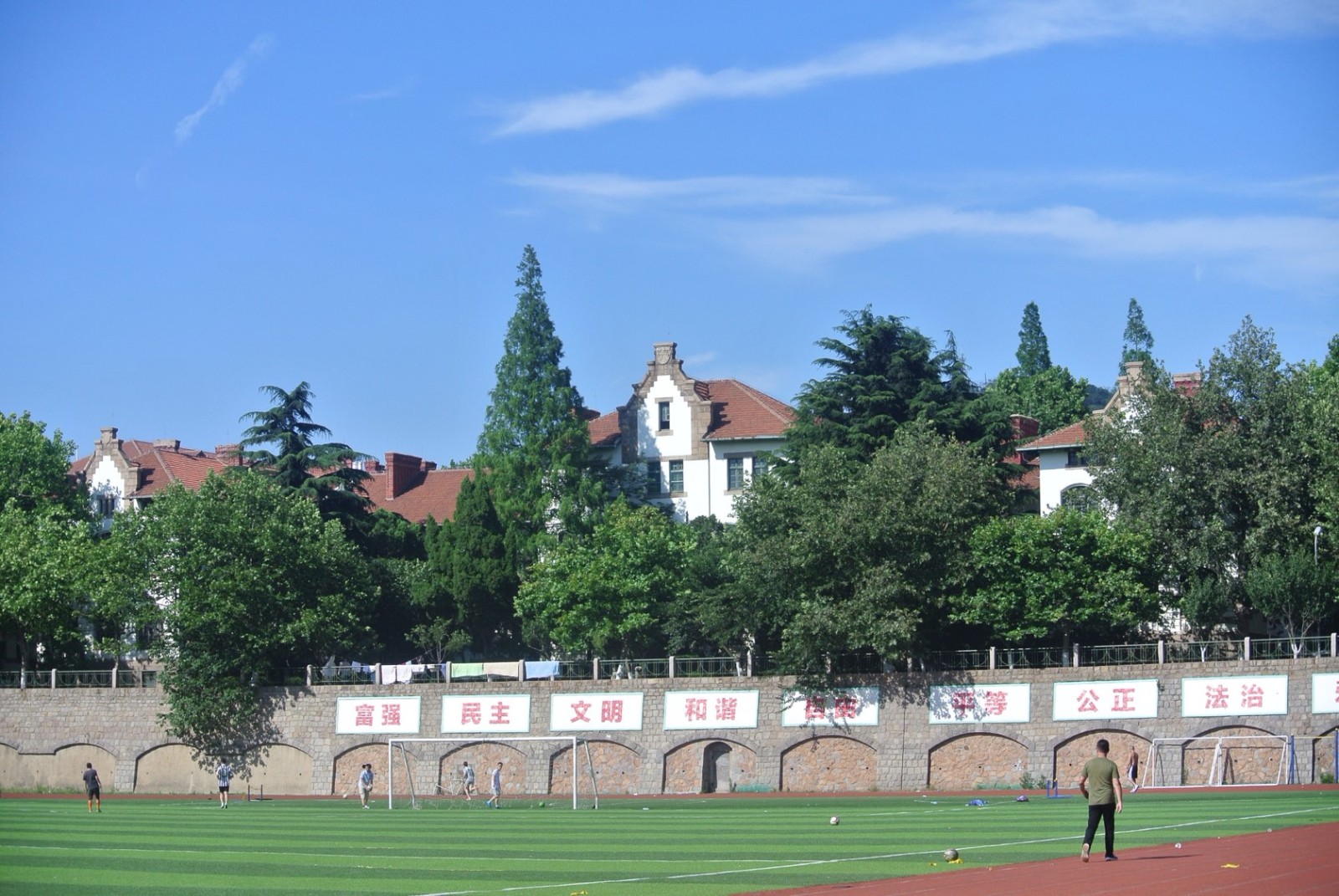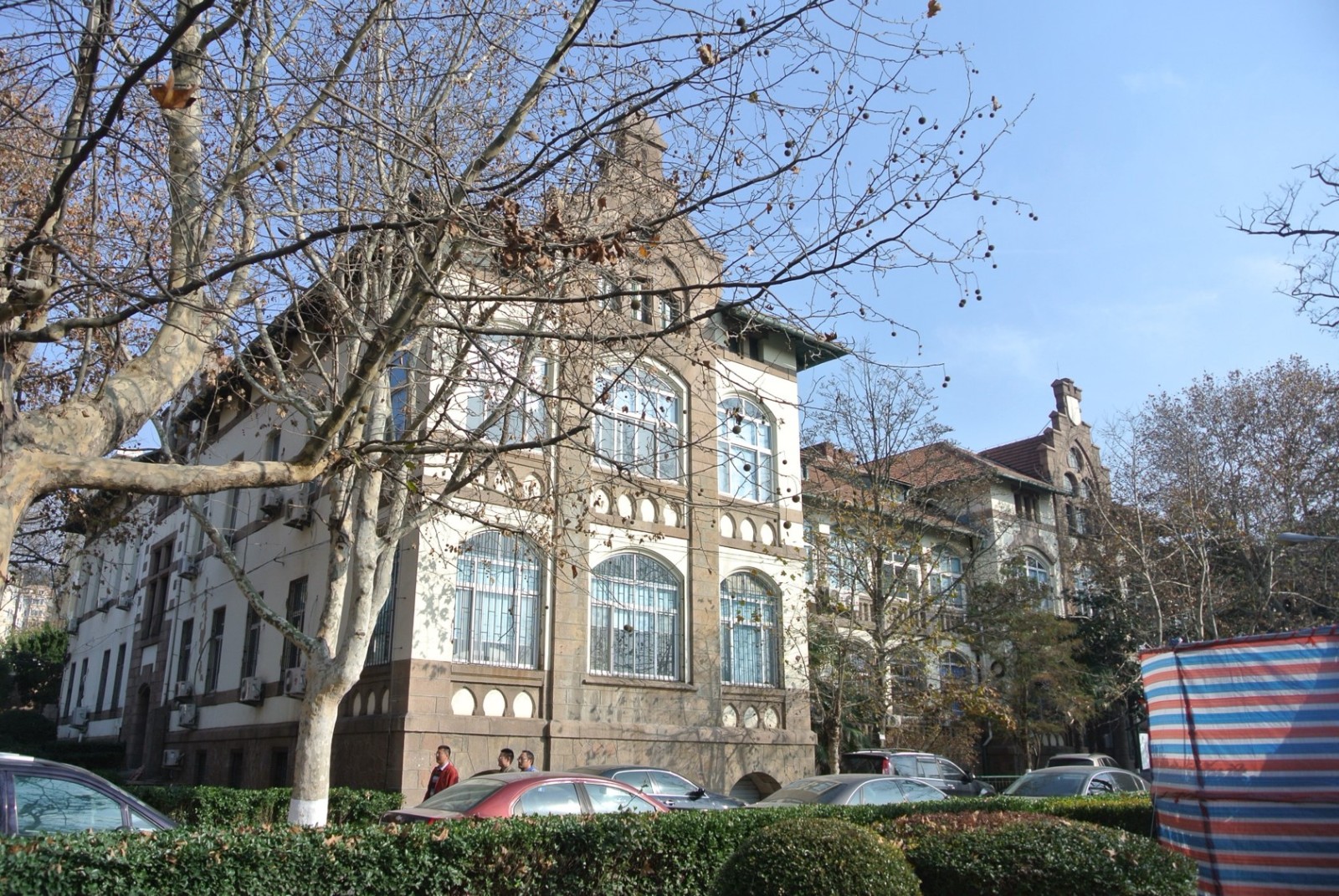 俾斯麥兵營(yíng)舊址,位于市南區(qū)魚山路5號(hào)中國(guó)海洋大學(xué)院內(nèi)。共四座樓,建筑設(shè)計(jì)基本一致。德國(guó)三段式,有地下室和閣樓,花崗巖墻基,折坡屋面,正立面窗戶很大,多為拱形。山墻上有“矛”和“盾”的標(biāo)志。德軍在原清代章高元部兵營(yíng)基礎(chǔ)上擴(kuò)建的兵營(yíng),是一個(gè)巨大的建筑群落,四座營(yíng)房建筑的平面分別呈H型,共同圍成一練兵場(chǎng),是開敞性的新哥特式建筑,此建筑是德軍在青島修建的第一座兵營(yíng),也是最重要的一座兵營(yíng),是膠澳司令部駐地。德軍戰(zhàn)敗投降后,兵營(yíng)為日軍占用,更名為萬(wàn)年兵營(yíng)。1922年中國(guó)收回青島后,為中國(guó)陸軍第5師第40旅駐地。1924年在此設(shè)置青島大學(xué),目前此處建筑均為中國(guó)海洋大學(xué)所有。