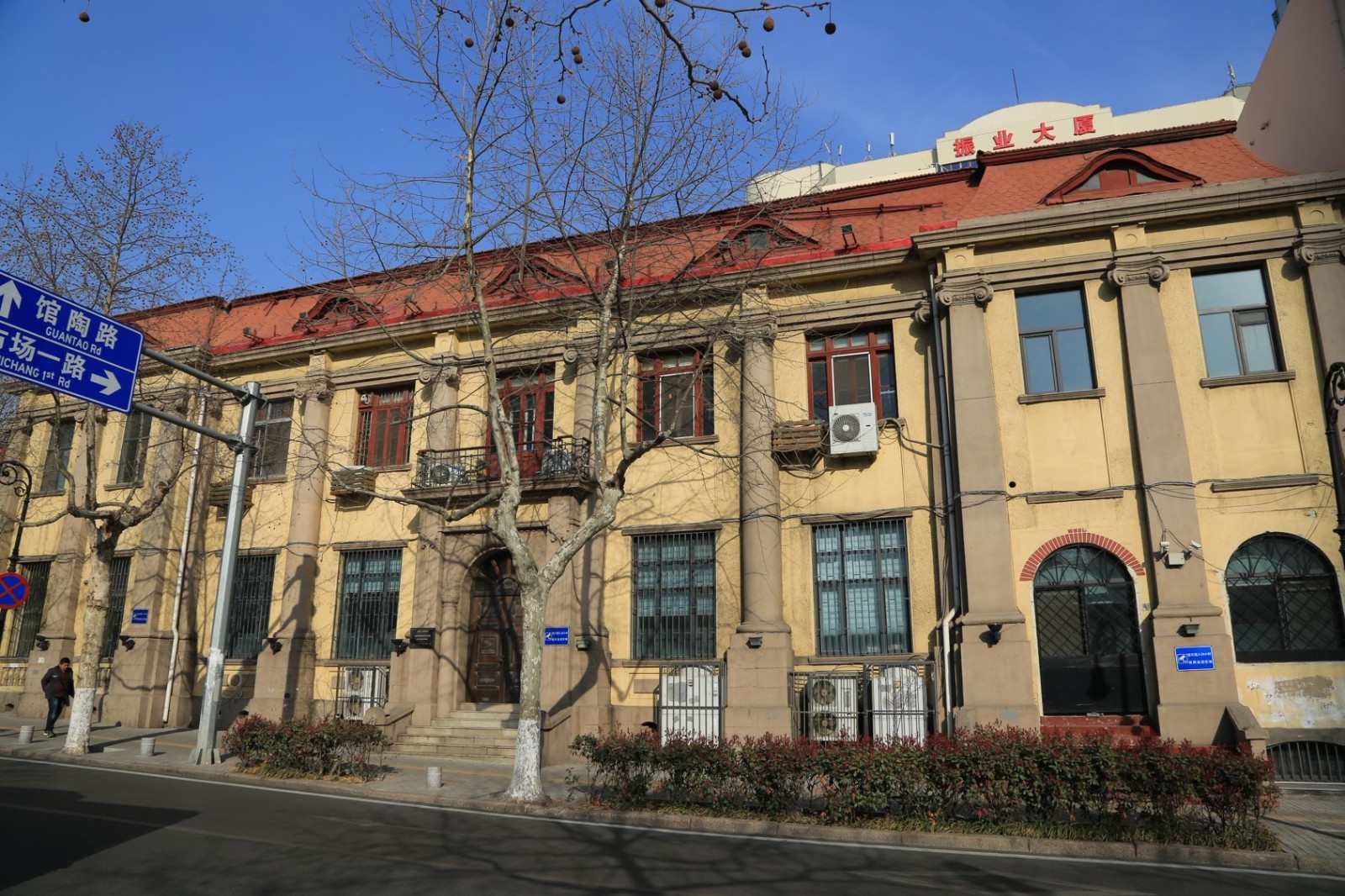 三井洋行舊址,位于市北區(qū)堂邑路11號(hào)。占地面積約1466平方米,建筑面積約2980平方米。樓高二層,磚石木結(jié)構(gòu),平面呈L形。大體分西、北兩部分,西部為主體。正門西向,中軸線對稱,左右墻角各有三根羅馬式圓形貼面石柱,凹形水刷石墻面,花崗石砌基,多角折坡絳紅色牛舌瓦屋面。入口處為4根羅馬半圓形貼面石柱,登7級(jí)臺(tái)階有挑廊,上為半圓式露天涼臺(tái)。