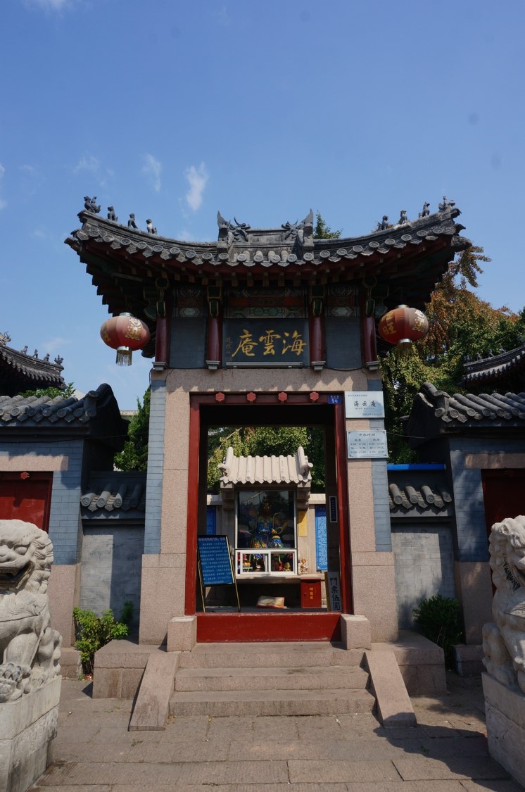 海云庵又名大士庵,位于今市北區(qū)興隆路街道海云街1號(hào),始建于明朝,迄今已有500多年的歷史。占地800平方米。一進(jìn)院落,外以灰垣相圍,內(nèi)有大殿、東西配殿、東西廂房和鐘樓、鼓樓。庵內(nèi)一株高大的古銀杏枝繁葉茂。庵內(nèi)大殿供奉觀音大士,左右配殿分別供奉龍王、關(guān)公、比干、老君、魯班等。1923年重修時(shí),增建鐘、鼓樓各一座,近年又在庵前辟建廣場(chǎng),是青島市區(qū)唯一一座開(kāi)展宗教活動(dòng)的道教廟庵。每年正月十六為廟會(huì),并逐漸形成了以糖球?yàn)樘厣膫鹘y(tǒng)廟會(huì),——海云庵糖球會(huì)。