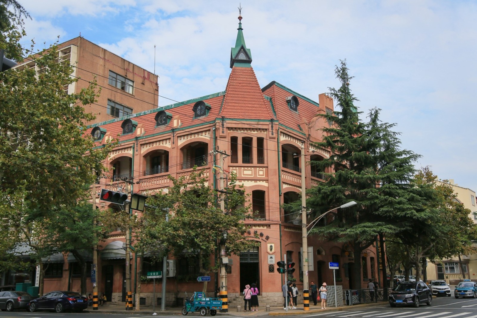 該建筑由德國漢堡阿爾托納區(qū)F.H.施密特公司承造,原屬馮·提帕斯基希公司私人商業(yè)大樓,后由德國膠澳總督府租下一層為郵政局。建筑面積約2230.23平方米(其中地下室222.18平方米),磚木結(jié)構(gòu)。地上三層,地下一層,有閣樓。主樓立面沿兩側(cè)街道走向呈非對稱鈍角形,花崗巖砌墻基,上部為紅磚清水墻,窗臺上方為連拱券廊。轉(zhuǎn)角部高起攢尖塔樓。西、南立面各有一曲線山花,高陡的屋頂開有弧形老虎窗,臨街的屋面覆以紅瓦,北面的平屋頂則用鐵皮鋪成。聯(lián)拱券廊,高陡屋頂上的弧形老虎窗以及主立面的山花增加了建筑的變化。當(dāng)時(shí)除一層為德國膠澳郵政局使用外,二、三層為宿舍,該建筑后來局部作了改造,凹廊裝玻璃窗,原有的細(xì)部裝飾在維修中改變。