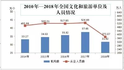 2018年末,納入統(tǒng)計范圍的全國各類文化和旅游單位31.82萬個,從業(yè)人員375.07萬人。其中,各級文化和旅游部門所屬單位66835個,增加91個;從業(yè)人員67.06萬人,增加0.34萬人。